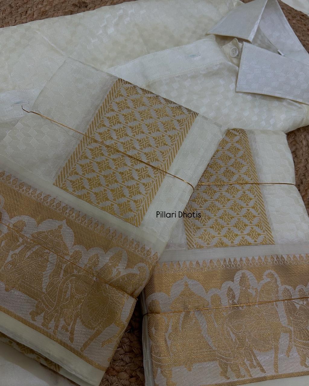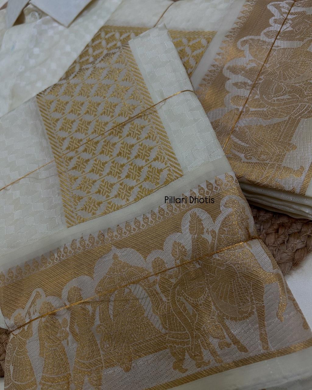 Exclusive Premium designer Halfwhite Pallaku Border dhoti set