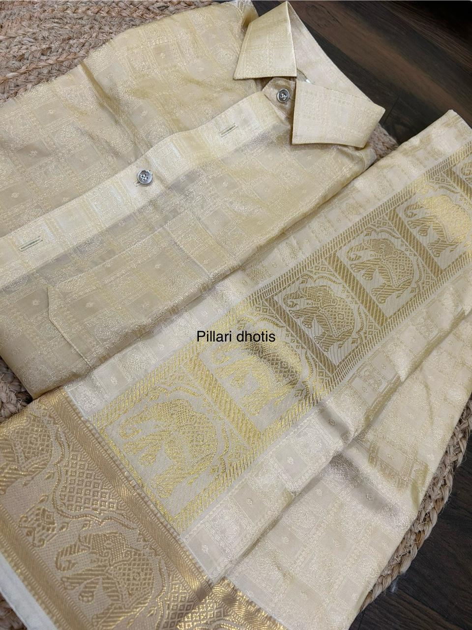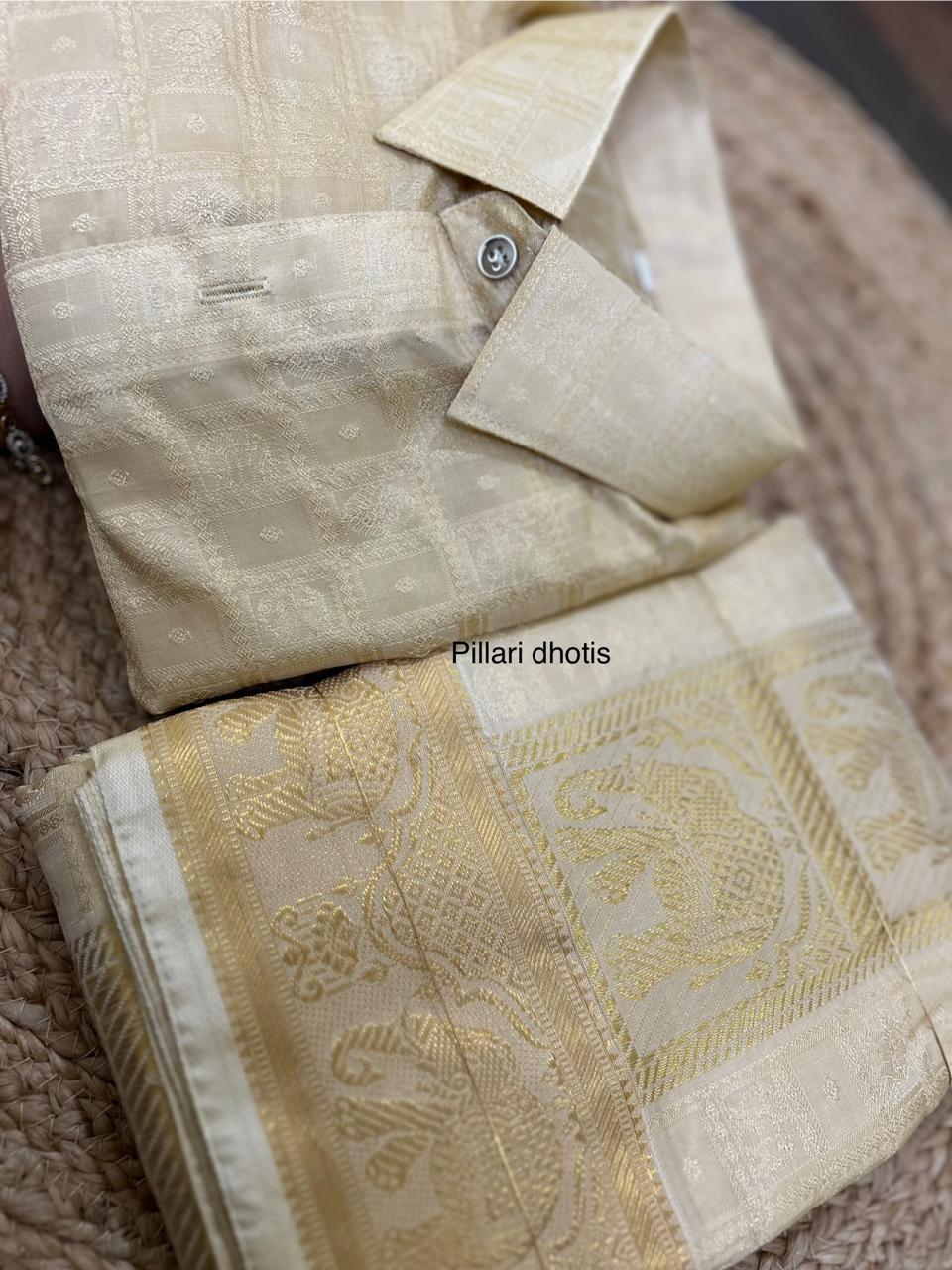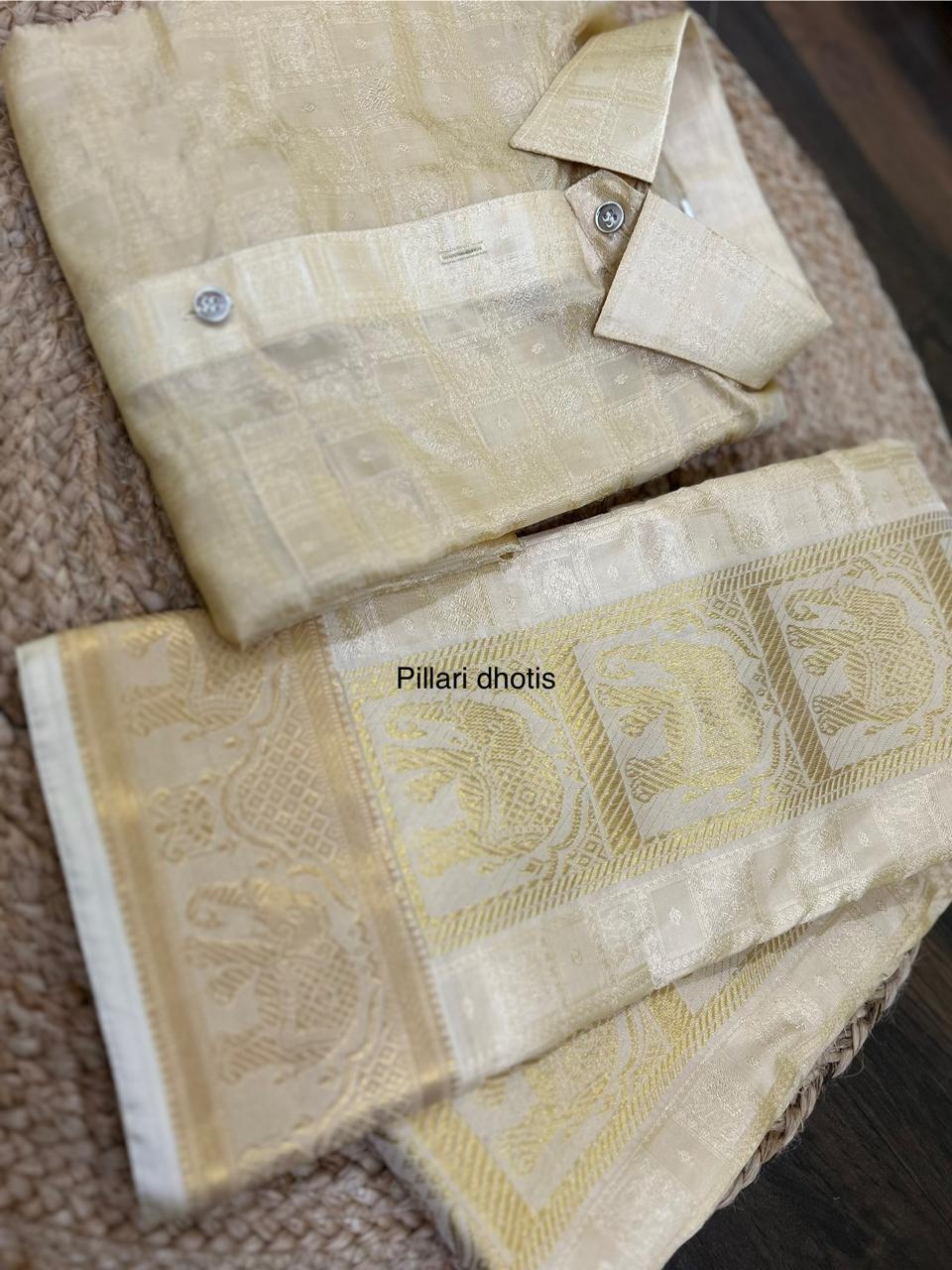 Exclusive Premium Elephant designer Gold Elephant Border dhoti set